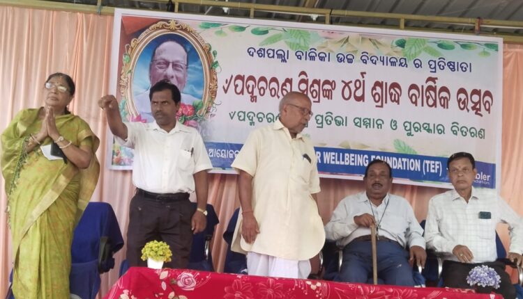 ଦଶପଲ୍ଲା (ଚିତ ରଞ୍ଜନ ମିଶ୍ରଙ୍କ ରିପୋର୍ଟ) : ଶିକ୍ଷାପ୍ରଦୀପ, ଜ୍ଞାନର ଆଲୋକ, ମାଟିମହକ, ବିପ୍ଲବୀ, ରାଜନୈତିକ ନେତା,ସମର୍ପିତ ସମାଜ ସେବୀ,ସାହିତ୍ୟ, କଳା, ସଂସ୍କୃତି, ପ୍ରକୃତି ଓ ଶିକ୍ଷା ପ୍ରେମୀ ଦିବଙ୍ଗତ ପଦ୍ମ ଚରଣ ମିଶ୍ରଙ୍କ ଚତୁର୍ଥ ଶ୍ରାଦ୍ଧ ବାର୍ଷିକୀ ଉତ୍ସବ ଦଶପଲ୍ଲା ସରକାରୀ ବାଳିକା ଉଚ୍ଚ ବିଦ୍ୟାଳୟରେ ଅବସର ପ୍ରାପ୍ତ ପଶୁ ଡ଼ାକ୍ତର ଓ ବରିଷ୍ଠ ସମାଜସେବା ଶ୍ରୀଯୁକ୍ତ ଅନ୍ତର୍ଯ୍ୟାମୀ ଭୂୟାଙ୍କ ପୌରହିତ୍ୟରେ ଅନୁଷ୍ଠିତ ହୋଇଯାଇଛି।ଏ ଉତ୍ସବ ରେ ମୂଖ୍ୟ ବକ୍ତା ଭାବେ ବିଶିଷ୍ଟ ସମାଜସେବୀ ଶ୍ରୀଯୁକ୍ତ ପ୍ରସନ୍ନ କୁମାର ପଣ୍ଡା ମହୋଦୟ ଏ ବାଳିକା ଉଚ୍ଚ ବିଦ୍ୟାଳୟର ପୃଷ୍ଠଭୂମି, ଇତିହାସ, ସଙ୍ଘର୍ଷ ତଥା ପ୍ରତିଷ୍ଠାତା ଦିବଂଗତ ପଦ୍ମ ଚରଣ ମିଶ୍ରଙ୍କ ତ୍ୟାଗ ଓ ସେବା ଇତ୍ୟାଦିକୁ ସ୍ମରଣ କରିବା ସହିତ ତାଙ୍କ ଆଦର୍ଶରେ ଅନୁପ୍ରାଣିତ ହେବା ପାଇଁ ଉପସ୍ଥିତ ଶିକ୍ଷକ ଓ ଛାତ୍ରୀଙ୍କୁ ଆହ୍ବାନ ଦେଇଥିଲେ। ପଦ୍ମ ଚରଣ ମିଶ୍ରଙ୍କ ସ୍ମୃତିରେ ପ୍ରତିବର୍ଷ ପରି ଚଳିତ ବର୍ଷ ମଧ୍ୟ ମେଧାବୀ ଛାତ୍ରୀ ମାନଙ୍କୁ ଅନ୍ତର୍ନିହିତ ଦକ୍ଷତା ପ୍ରତିଭା ଓ ଜ୍ଞାନ ବିଜ୍ଞାନର ବିକାଶ ପାଇଁ ପ୍ରୋତ୍ସାହନ ରାଶି ସହିତ ପ୍ରେରଣା ପତ୍ର ଓ ଟ୍ରଫି ଇତ୍ୟାଦି ଅତିଥି ବୃନ୍ଦଙ୍କ କର କମଳରେ ପ୍ରଦାନ କରାଯାଇଥିଲା। ଦିବଂଗତ ପଦ୍ମ ଚରଣ ମିଶ୍ର କେବଳ ଏକ ବ୍ୟକ୍ତି ନ ଥିଲେ ସେ ଥିଲେ ସାମାଜିକ ବିବର୍ତ୍ତନର ସ୍ବର, ସମାଜ ସଂସ୍କାରକ,କଳା ସାହିତ୍ୟ ବିପ୍ଳବୀ । ନାରୀ ଶିକ୍ଷାର ଅଗ୍ରଗତି ପାଇଁ ଏ ଅନୁଷ୍ଠାନ ସ୍ଥାପନ କରିଥିବା ଅନନ୍ୟ ବ୍ୟକ୍ତିତ୍ବ ହେଉଛନ୍ତି ଦିବଂଗତ ଡ.ପଦ୍ମ ଚରଣ ମିଶ୍ର। ତାଙ୍କର ନିଷ୍ଠାପର ଉଦ୍ୟମ,ଚେଷ୍ଟା ଦୂରଦୃଷ୍ଟି ସମ୍ପନ୍ନ ପ୍ରଗତିଶୀଳ ବୌଦ୍ଧିକ ଵିଚାର ଯୋଗୁଁ ଆଜି ଏ ଅନୁଷ୍ଠାନ ଶହ ଶହ ଛାତ୍ରୀଙ୍କୁ କରିପାରିଛି ଉଚ୍ଚଶକ୍ଷିତା। ବୋଲି ପଦ୍ମ ଚରଣ ମିଶ୍ରଙ୍କ ଝିଆରୀ ଶ୍ରୀମତୀ ମିନା କୁମାରୀ ଷଡ଼ଙ୍ଗୀ ମହୋଦୟା ନିଜ ବକ୍ତବ୍ୟରେ କହିଥିଲେ।ଏ ପ୍ରତିଭା ସମ୍ମାନ ଉତ୍ସବକୁ ସାମାଜିକ କର୍ମୀ ପ୍ରଭାତ କୁମାର ସାହୁ ସଂଯୋଜନା କରିଥିବା ବେଳେ ଦିବଂଗତ ପଦ୍ମ ଚରଣ ମିଶ୍ର ଙ୍କ ସୁଯୋଗ୍ୟ ସନ୍ତାନ ଶ୍ରୀଯୁକ୍ତ ଦିଲ୍ଲୀପ କୁମାର ମିଶ୍ର ଏ ଅନୁଷ୍ଠାନର ଉଜ୍ବଳ ଭବିଷ୍ୟତ କାମନା କରିବା ସହିତ ଧନ୍ୟବାଦ୍ ଅର୍ପଣ କରିଥିଲେ।